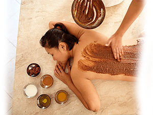 Un buen tratamiento comienza con una exfoliación completa para preparar la piel, eliminando pieles muertas y dilatando los poros para que cuando se realice el masaje y la envoltura, penetren mejor las propiedades del chocolate que hidrata, nutre y tonifica el cuerpo. Remineraliza la epidermis gracias a sus oligoelementos de calcio potasio y magnesio Actúa sobre el sistema nervioso como antidepresivo y antiansiedad gracias a los polifenoles, la teobromina y al tanino.